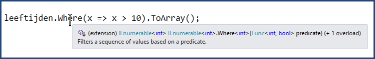 | Visual Studio toont de signatuur van de Where operator.png | 2020-12-07 19:37 | 9.0K | ||
