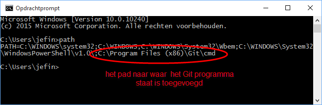 GIT Setup - PATH verifieren in opdrachtprompt.png