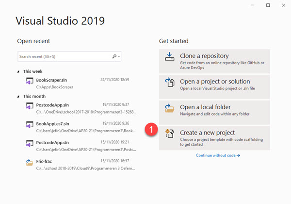 Maak een nieuw Razor Pages project met de naam BiblioAdmin in de map Programmeren3