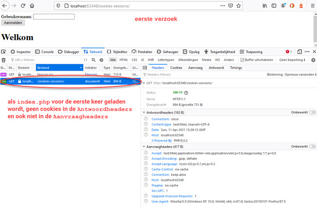Eén keer die cookie door de PHP-engine is gecreëerd en verstuurd, wordt deze cookie samen met het verzoek meegestuurd elke keer dat een webclient een verzoek indient.