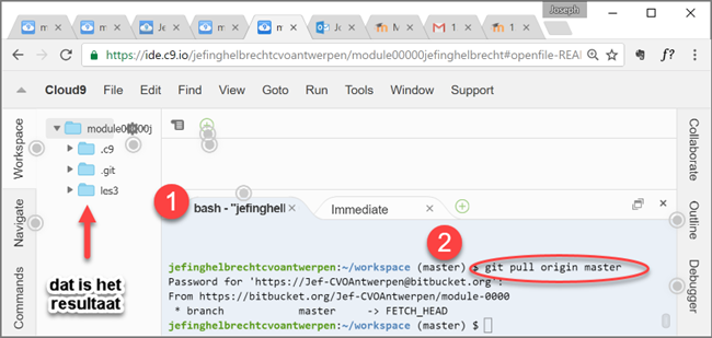 Cloud9 create workspace step 2S - Synchroniseer je Cloud9 workspace met je Bitbucket repo: