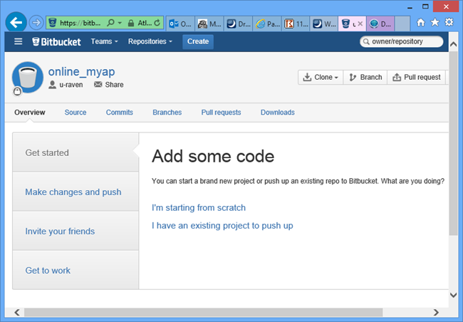 We gaan de zelfde myap repository op onze desktop in Gitbucket importeren. |