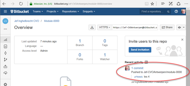 Cloud9 push changes to repo - Ga naar Bitbucket om te verifiëren als de push vanuit Cloud9 gelukt is: