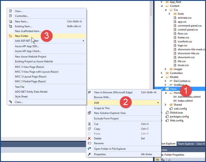 Een folder in de Views folder toevoegen - We geven er de naam UnitBase aan: